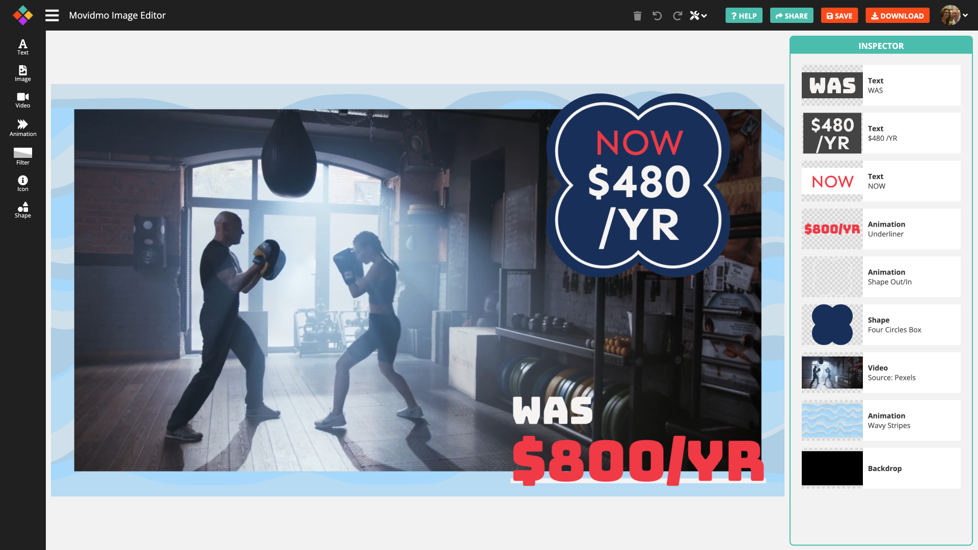 Simply click on a template, choose a size and then use the best-in-class Movidmo video editor to customize the template to your heart's content.